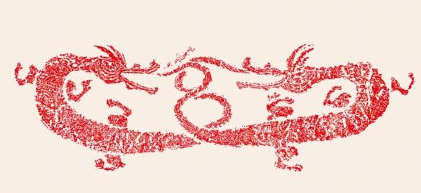 出土于陕西咸阳的秦代空心砖上的龙纹,还是蛇的形象。目前,发现的时代最早、与现代人想象的龙形象最接近的龙纹图像,是长沙马王堆西汉墓中出现的龙,接下来就是洛阳西汉画像空心砖上的龙。汉画像石升仙图中便出现了许多羽人戏龙、仙人骑神兽等画面。据洛阳古代艺术博物馆相关文章介绍,汉代的龙纹画像砖有长方形和三角形两种砖型。砖上的龙有两种形象:一种是武士御龙图中的龙,长约88厘米、高约40厘米。这条龙身躯修长,呈波浪起伏之状,尾巴上卷,身上面装饰有长条形和圆形图案。龙头上有一对长角,角尖呈螺旋状,龙口大张,露出长长的舌头和六枚牙齿。图上只画出两条腿,足呈鹰爪状,有三爪。龙背上有一名手持短剑和盾牌的武士;另一种是画面中只有一条龙(图2),龙的形状、姿态与前一种龙很像,但局部有一些差别。龙角像牛角,又尖又短,没有舌头,龙颈下有细细的龙须,后颈有两条勾云状的鬃毛,前腿上面有一条长长的带倒钩刺的东西。这两条龙通常被印在同一块砖的正反两个面上。这两条龙是一雌一雄,背上有武士的那条是雌龙,另一条是雄龙。