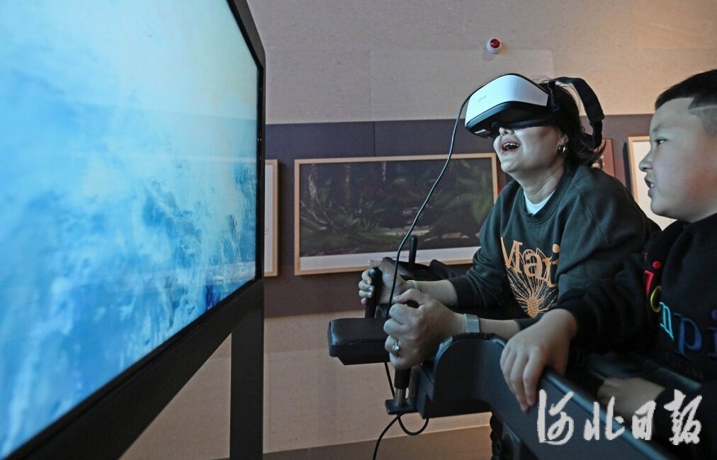 1月11日,游客通过VR设备获得新奇的观展体验。河北日报记者张昊摄