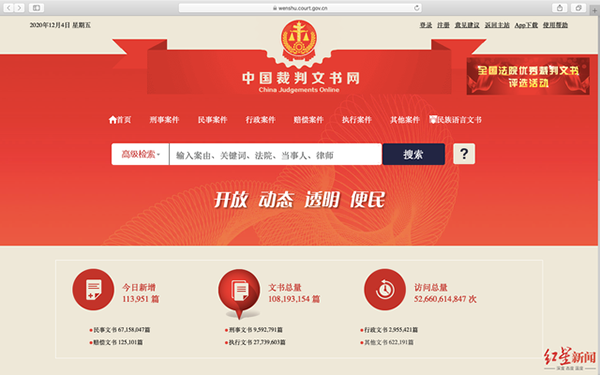 8.中国裁判文书网文书总量过亿篇 司法公开成为中国司法亮丽名片
