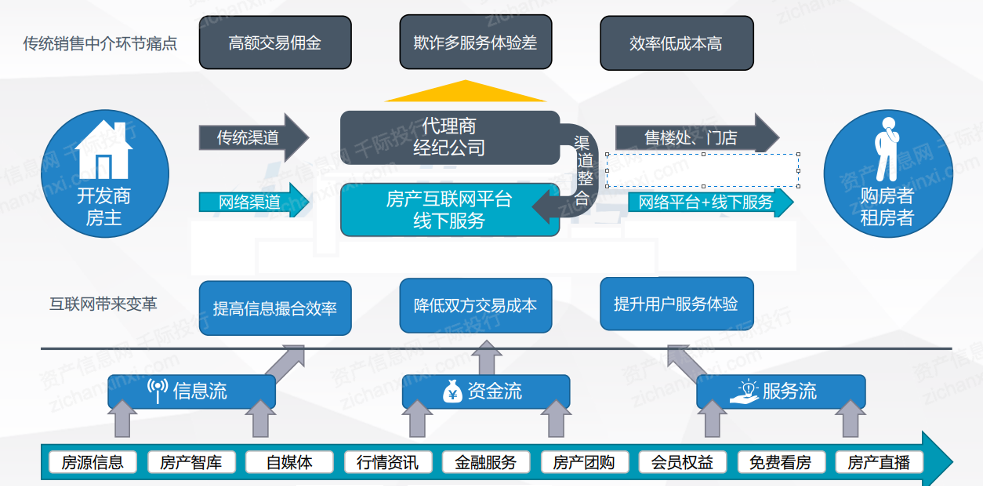 对于平台来说,提供购房过程中的一些环节的处理能力,不仅可以加速房屋交易流程,还可以进行赚取一定的服务差价(提供单项服务的成本和收益差值)