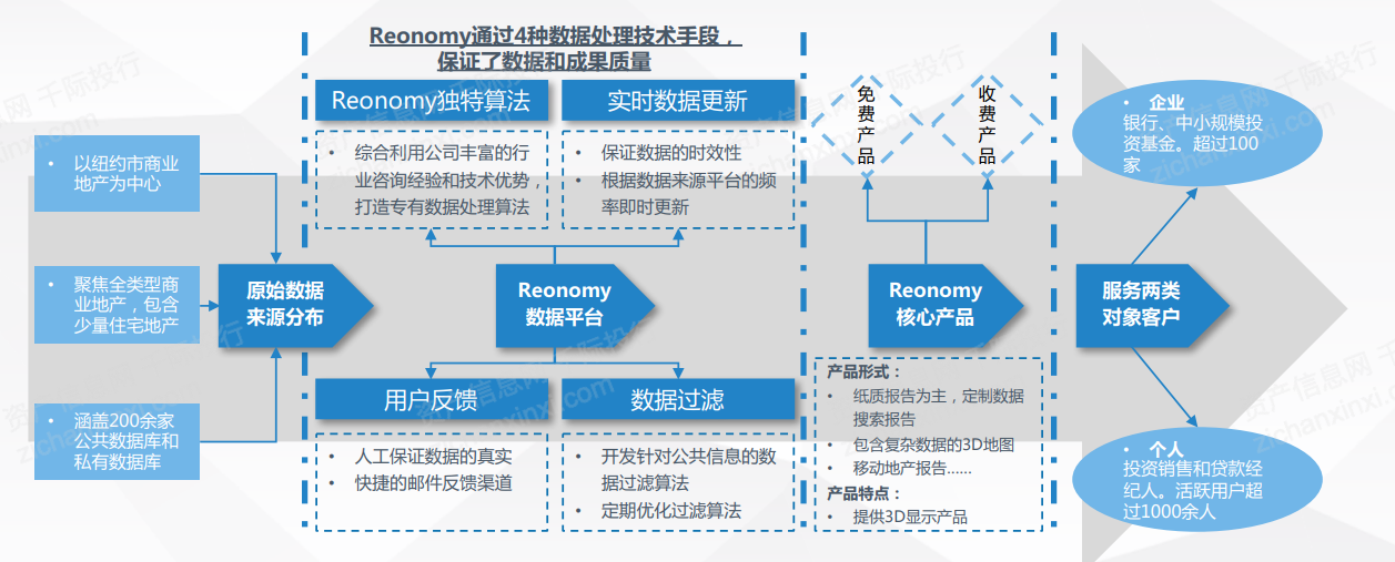 Reonomy等公司通过提供从分析报告到3D显示等多样化商业地产数据服务产品,完美协助纽约地区商业地产投资人的决策过程,通过精准目标客户定位、科学数据管理体系、先进技术应用构建核心竞争优势