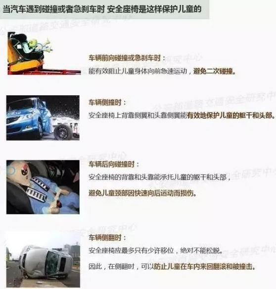 相关研究表明,当车辆以50km/h的速度发生碰撞时,12公斤的孩子会变成上百公斤的重物,大人根本就抱不住,更护不住!相反,如果在汽车碰撞时正确使用了儿童安全座椅,可以使婴儿死亡率降低约70%,幼儿死亡率降低约54%。