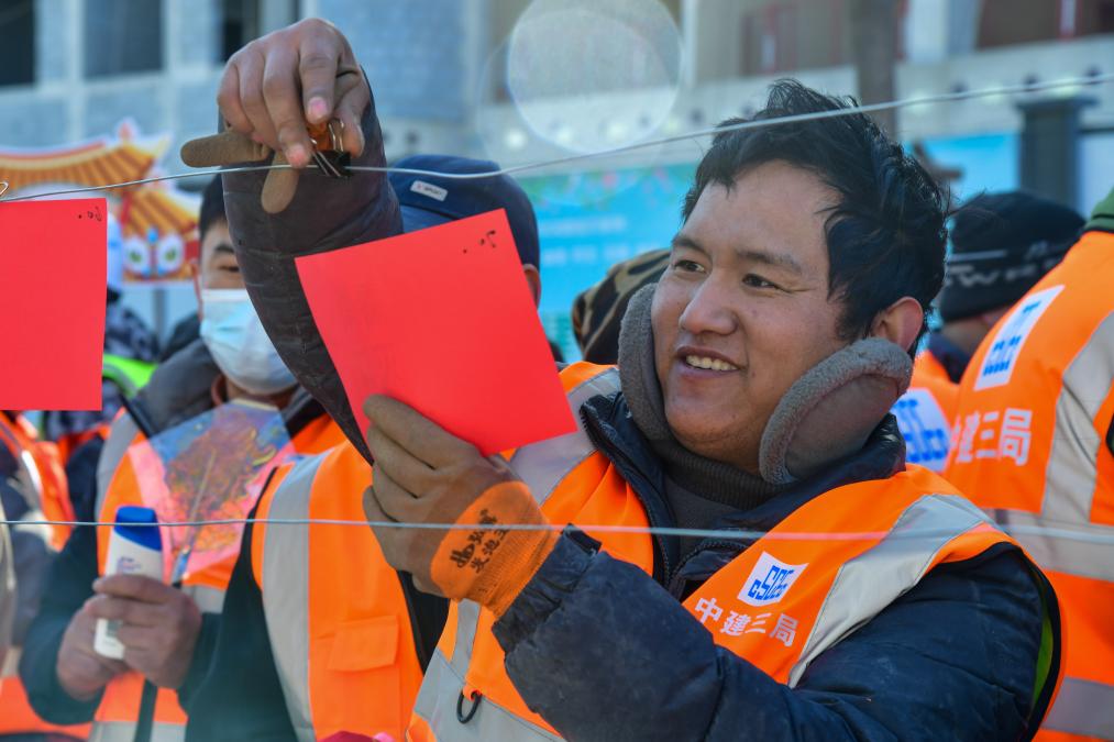 近日,中建三局济南市医疗康养综合服务基地建设项目部举办“情系农民工 温暖迎新春”活动,将新春集市搬进项目部,工友们在现场体验了剪纸、皮影戏、品尝年货等活动,提前感受别样的年味。