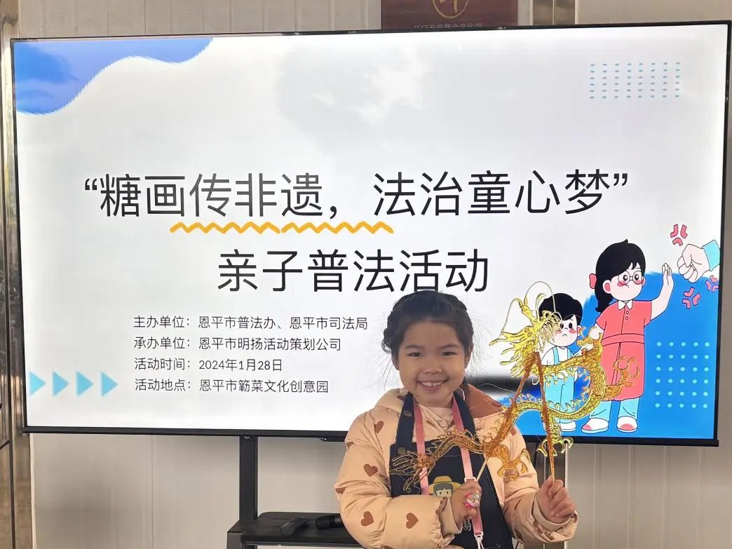 恩平市普法办、恩平市司法局开展“糖画传非遗 法治童心梦”亲子普法活动,积极探索非物质文化遗产传承与法治文化作品创作的结合点,创新普法载体。