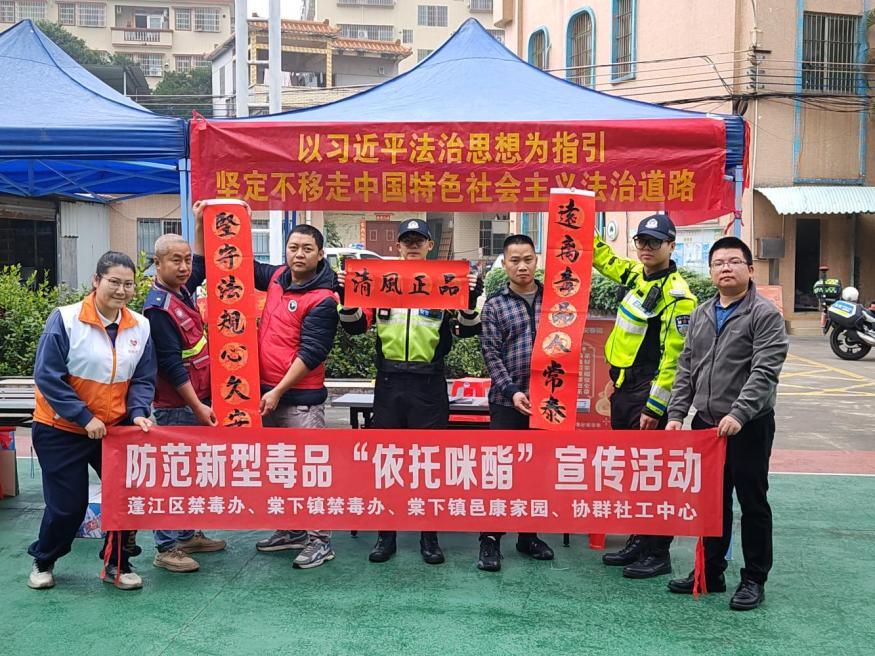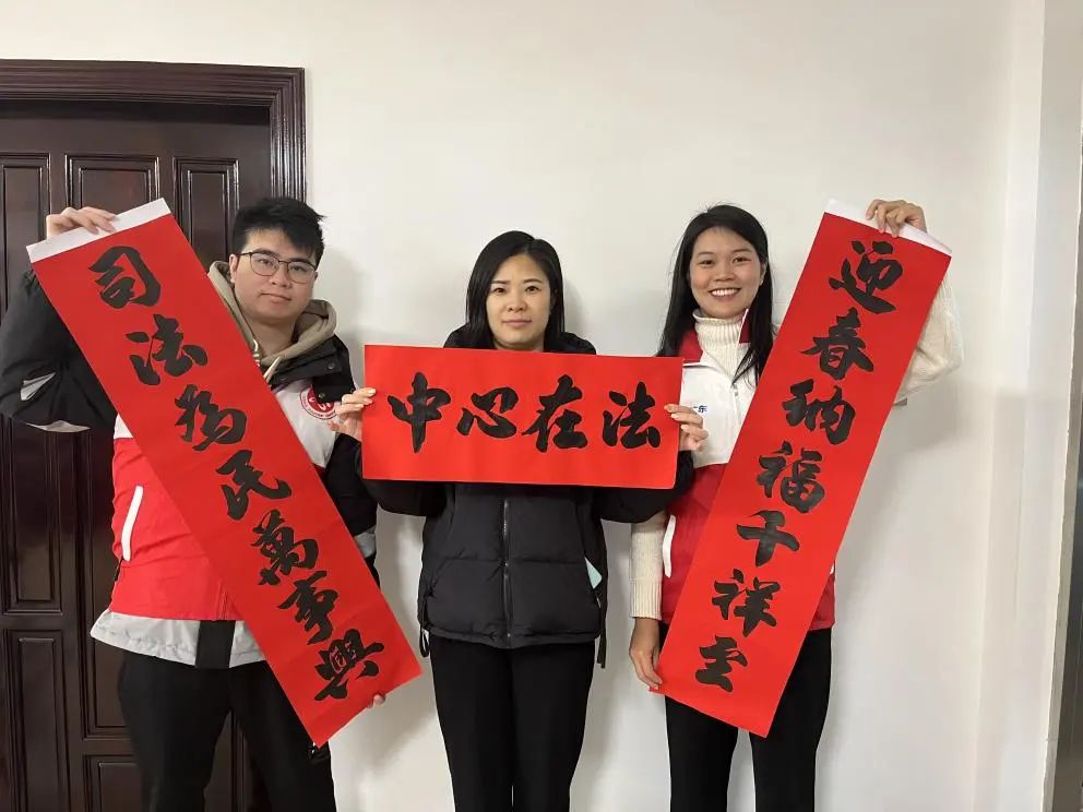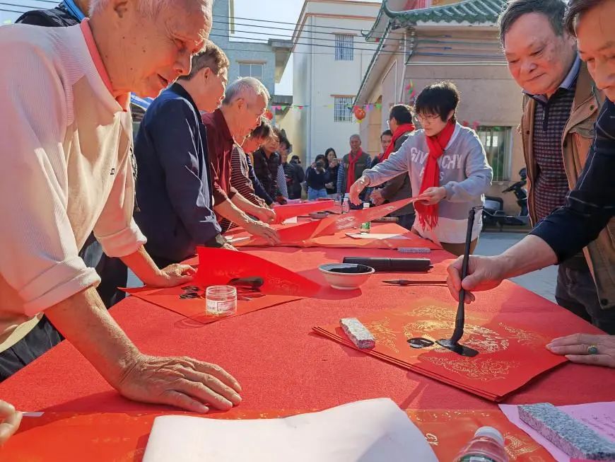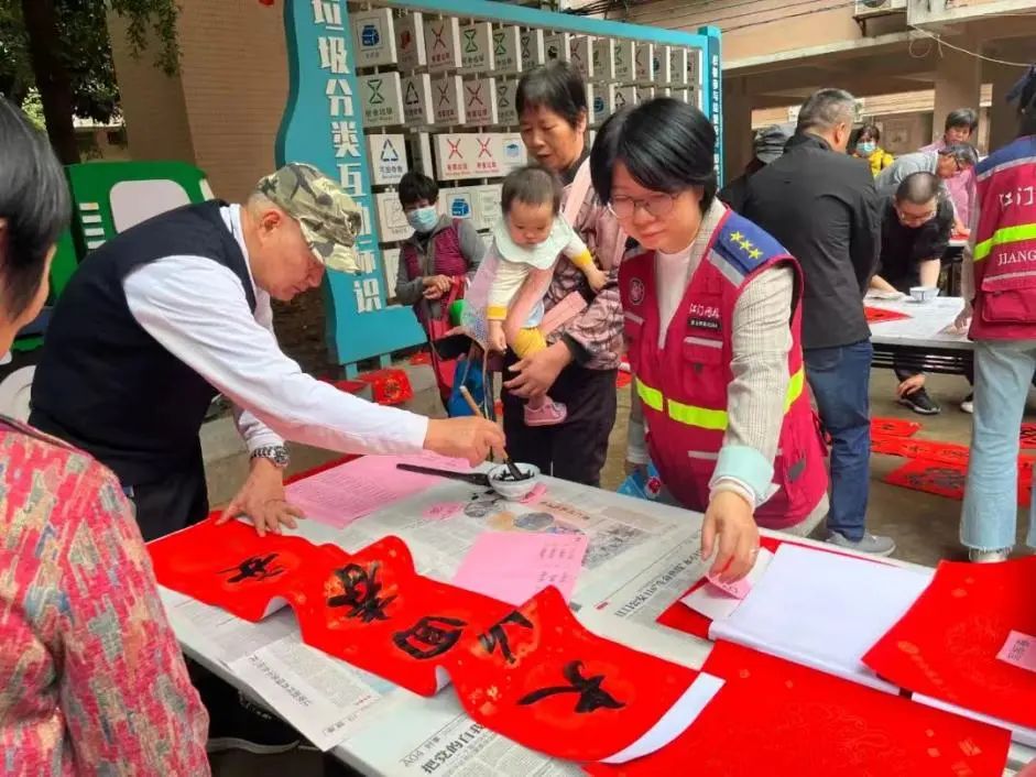 蓬江区司法局、棠下司法所联合棠下镇团委、交警中队、综治办、禁毒办、村居法律顾问开展“挥墨迎新送祝福 法治文化进村居”活动。