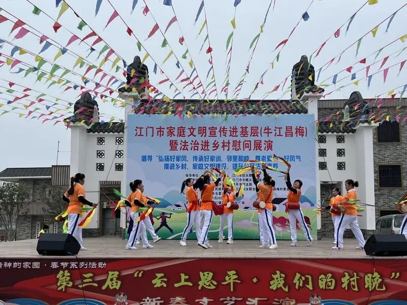 江门市司法局举办“江门市家庭文明宣传进基层暨法治进乡村”慰问展演活动,活动现场开展了形式多样的文艺表演节目,并为群众送“福”!