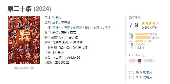 文章作者称,看了《第二十条》,心潮澎湃,久久不能平静。它不仅是一部法律题材的电影,它更是一部属于每个人的生活片。当然,第二十条指的就是刑法第二十条,也就是正当防卫的这个条款。这个条款是那么熟悉,又那么陌生。内容大致都是知道的,但是我们又有多少人真正了解它的本质含义,以及那沉甸甸的分量。它砸在人头上,就是一个人的命运,甚至是一个家庭的命运,以及名誉、尊严、自由这些最可宝贵的东西。它会影响一个人的是非观和正义感。