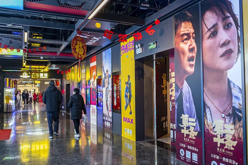 资料图:2024年2月10日,上海,五角场万达的电影海报墙。(视觉中国)