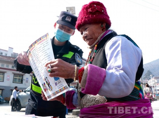 为加强法制宣传教育,增强全民法治观念,近日,西藏日喀则边境管理支队陈塘边境派出所结合“百万警进千万家”活动,在当地大街小巷开展了“法润边关”主题活动,将习近平法治思想和中央全面依法治国工作会议精神传递给百姓。