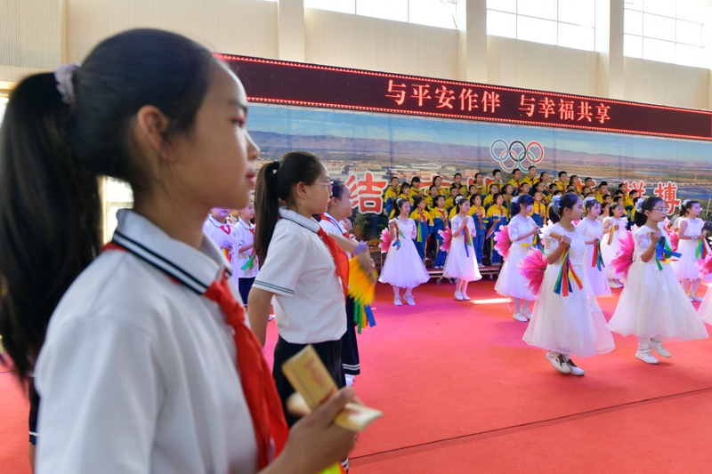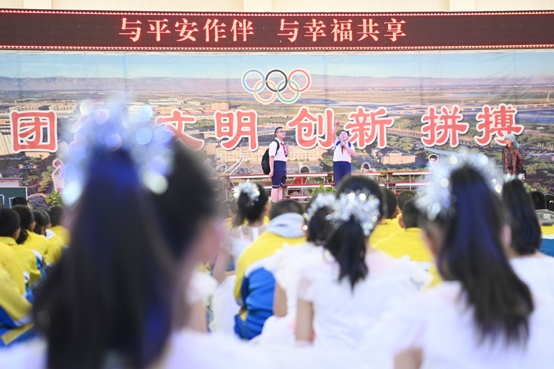 4月14日,在张掖市甘州区大成学校,学生们通过快板展演开展国家安全教育活动。