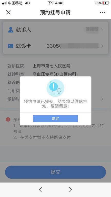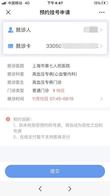 5、选择就诊人,提交预约挂号申请;