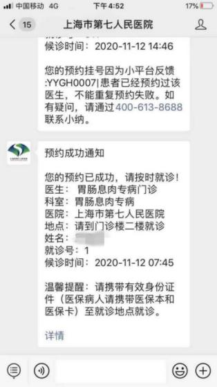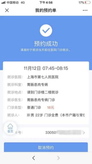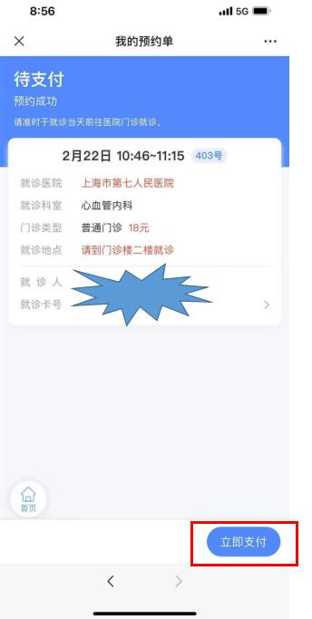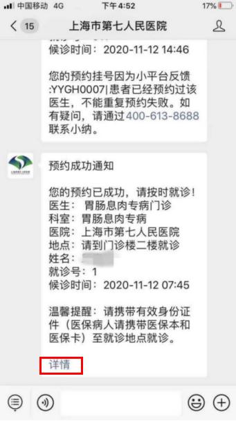 7、就诊当日通过点击推送消息详情或我的预约进行挂号;