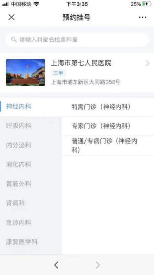 3、选择所需挂号的科室;