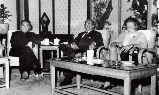 1963年10月,周恩来总理在北京会见戴高乐将军的代表、法国前总理富尔及夫人,商谈两国建交问题。