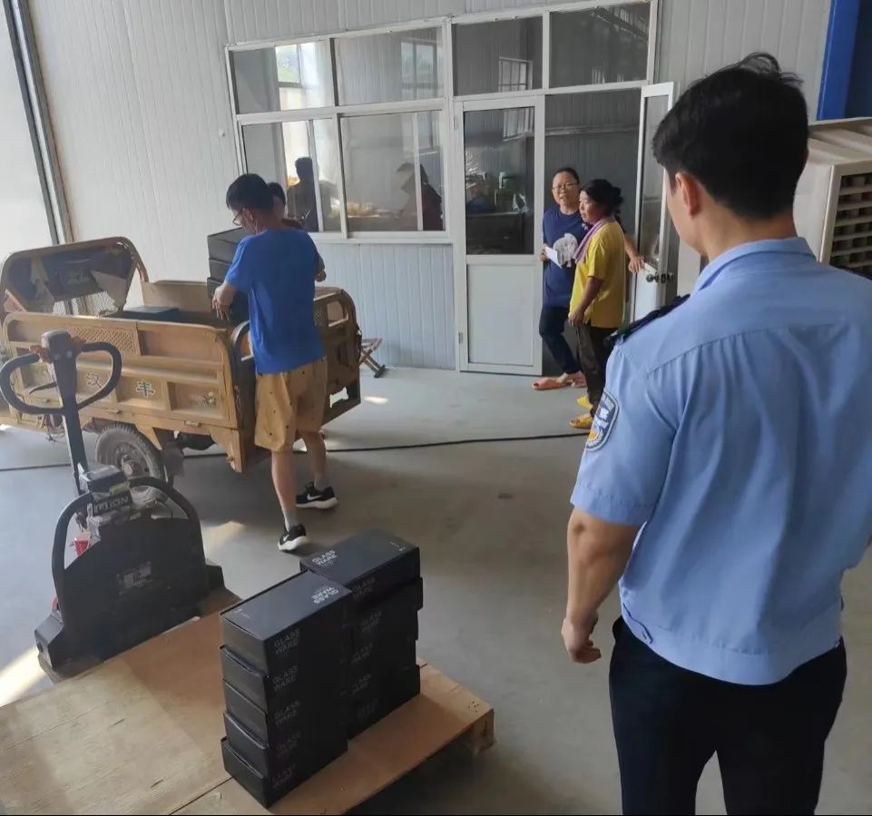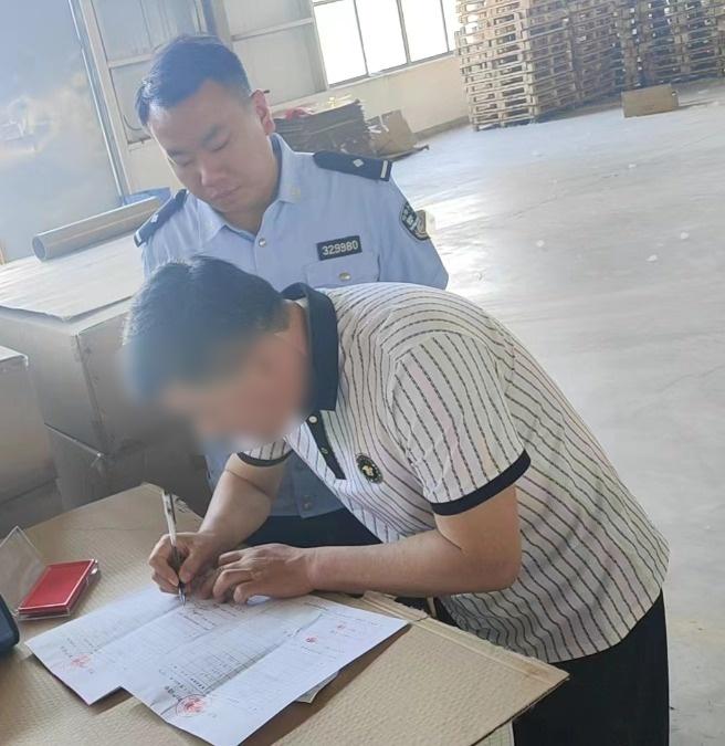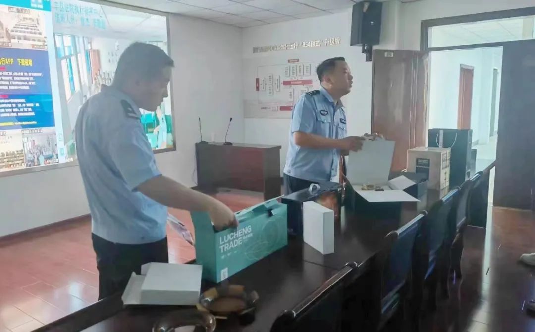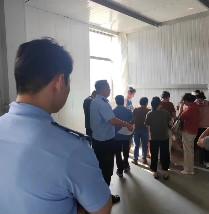 干警们顾不得满脸的汗水在旁一遍遍仔细审核每个人的名字和产品数量……