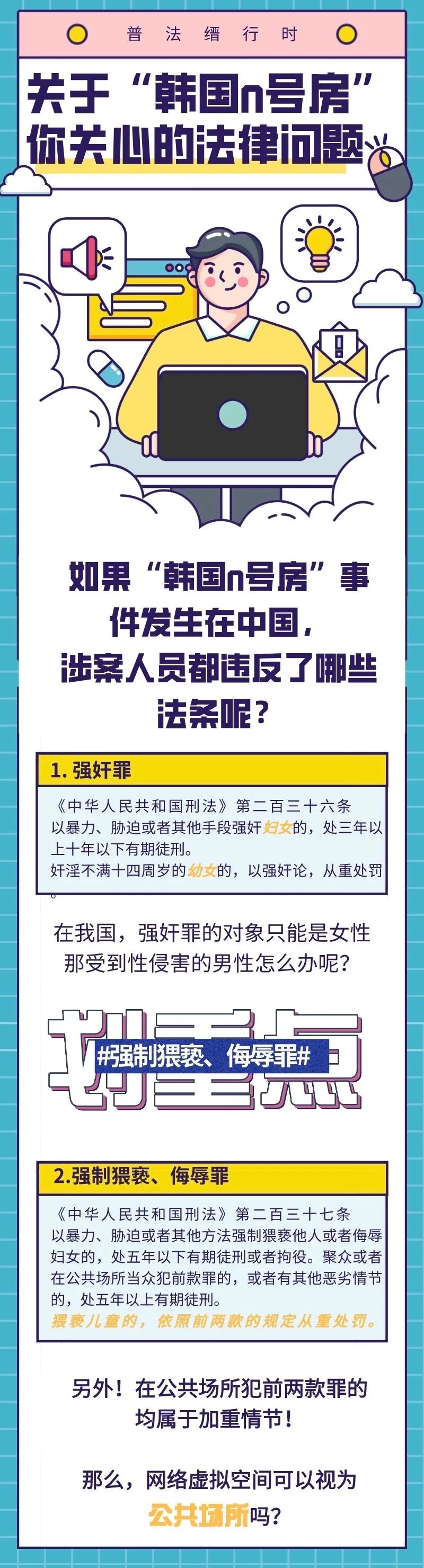 韩国N号房事件为我们敲响了警钟,网络的四通八达,原本是为了人与人的关系不受距离影响、更加亲密。信息的隐蔽匿名,原本也是出于对隐私的保护,不被恶意搜集。但却反而成了图谋不轨之人作恶多端、牟取暴利最便捷的途径。网络上隐蔽的访问路径、难以追踪的数字交易,逐渐成了犯罪滋生的温床,但网络无边,法律有界,网络空间也是社会空间,同样要遵守法律,维持正常秩序。