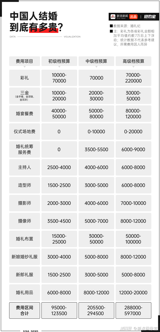 婚礼到底多烧钱?通过整理网络信息,我们发现,举办一场初级档的婚礼预算就在9万至12万之间,如果想要上一些档次那么会突破20万。