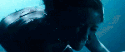 在鲨鱼这么暴力的生物面前,不比它更暴力,是不可能求生的。女主在水下利用智取终于让鲨鱼万箭穿心。