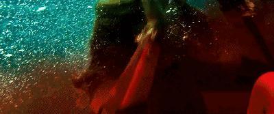 为了求生,要多次潜下水底,伤口的血染红了周围的血,好痛,又好美!