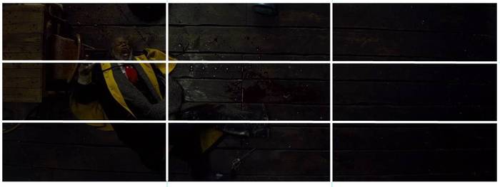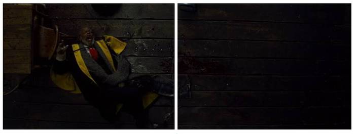 塞缪尔·杰克逊饰演的沃伦上校被刺客从地板下面用枪爆了下体,痛的在地上翻滚,真·蛋蛋的忧伤!