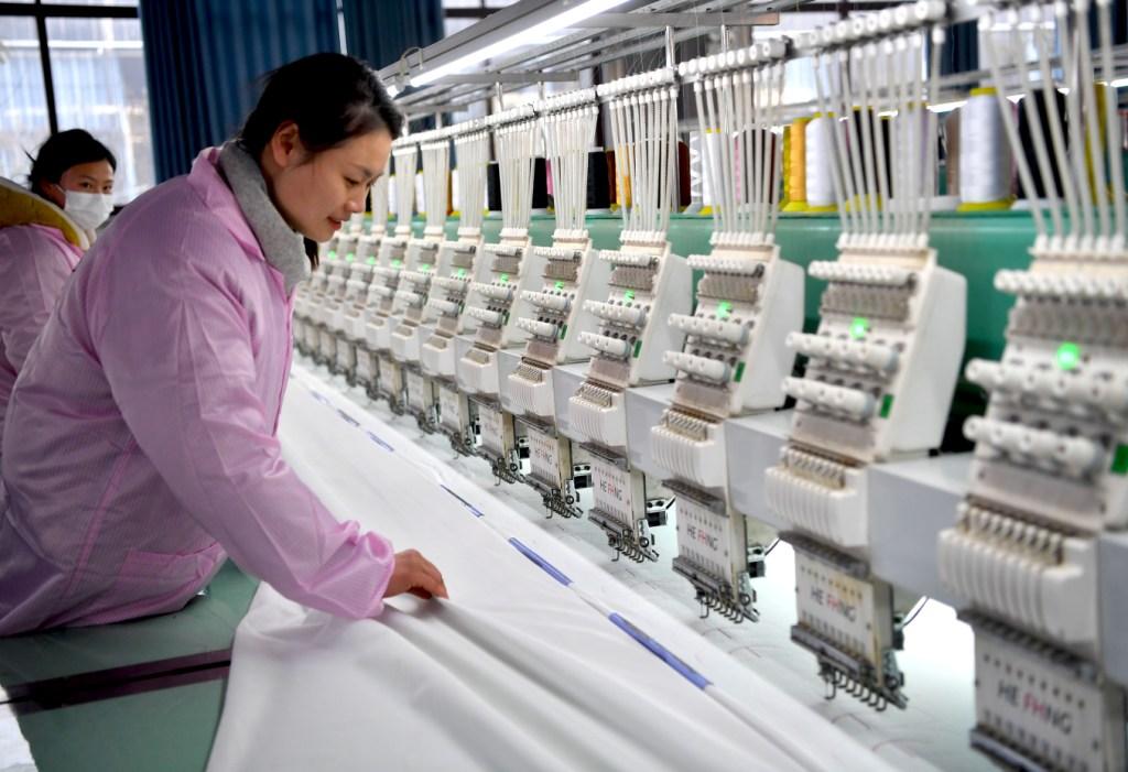 1月28日,在亳州市利辛县旧城镇一家母婴用品生产车间,工人在赶制订单。