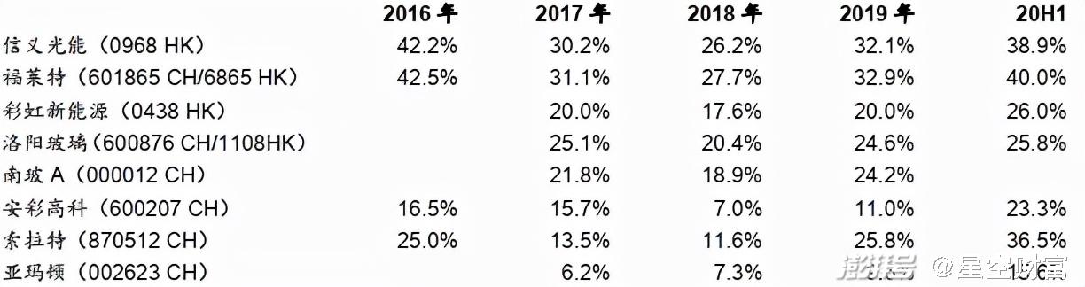 图片:2020年国内光伏玻璃玩家产能情况