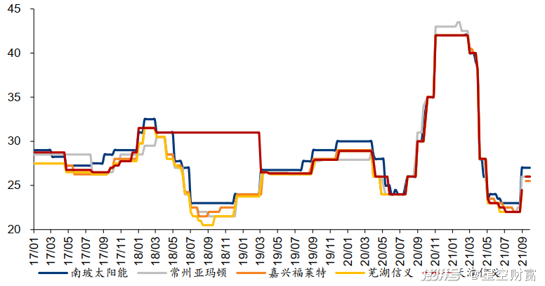 图片:不同玩家光伏玻璃售价变动情况(元/平方米)