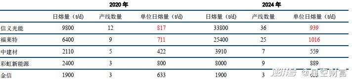 深究一下玩家的窑炉情况,就会发现,信义光能、福莱特主要使用的就是大窑炉。1000吨/天生产线的单位成本较650吨/天低10%-20%。