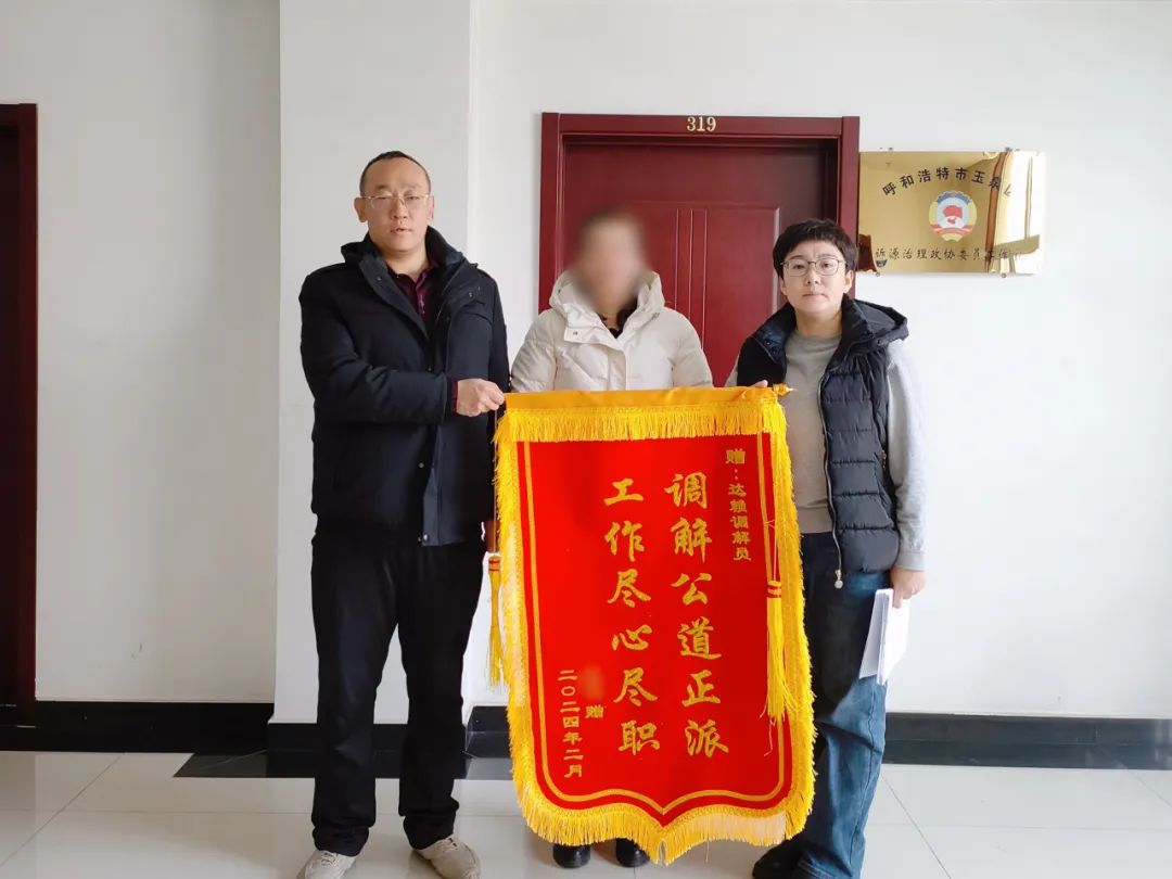 近日,呼和浩特市玉泉区人民法院诉源治理政协委员工作室成功调解了一起房屋买卖合同纠纷案件,经过区政协委员、兴隆巷司法所调解员、本案特邀调解员达赖耐心调解,原被告双方放下积怨顺利达成调解协议,纠纷得到圆满解决。