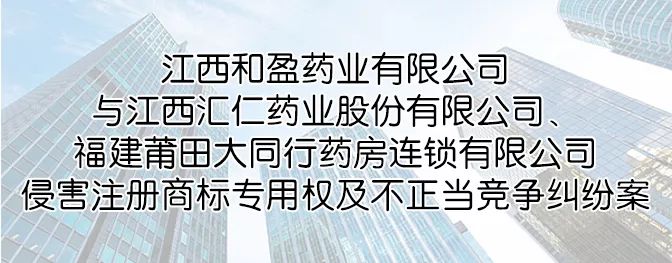 江西汇仁药业股份有限公司(下称汇仁药业)是第1425456号“汇仁”商标的专利权利人,该商标核定使用商品为第5类,包括医药制剂、药用胶囊、药物胶囊、胶丸(蜜丸)、口服液。2002年在中成药商品上的“汇仁”商标被认定为中国驰名商标。中药“肾宝片”的发明专利属于国家863科技计划研究成果,2009年起至今连续九年被认定为江西省著名商标。江西和盈药业有限公司(下称和盈公司)生产的“汇仁金匠”牌肾宝糖浆,通过福建莆田大同行药房连锁有限公司(下称大同行公司)在淘宝开设的大同行大药房旗舰店进行销售。“汇仁金匠”牌肾宝糖浆的外包装与“汇仁”牌肾宝片的外包装装潢相似。“汇仁金匠”牌肾宝糖浆外包装中在显著位置突出使用的红色不规则封闭图案的白色“汇仁金匠”标识,仅仅比“汇仁”商标多了“金匠”二字。