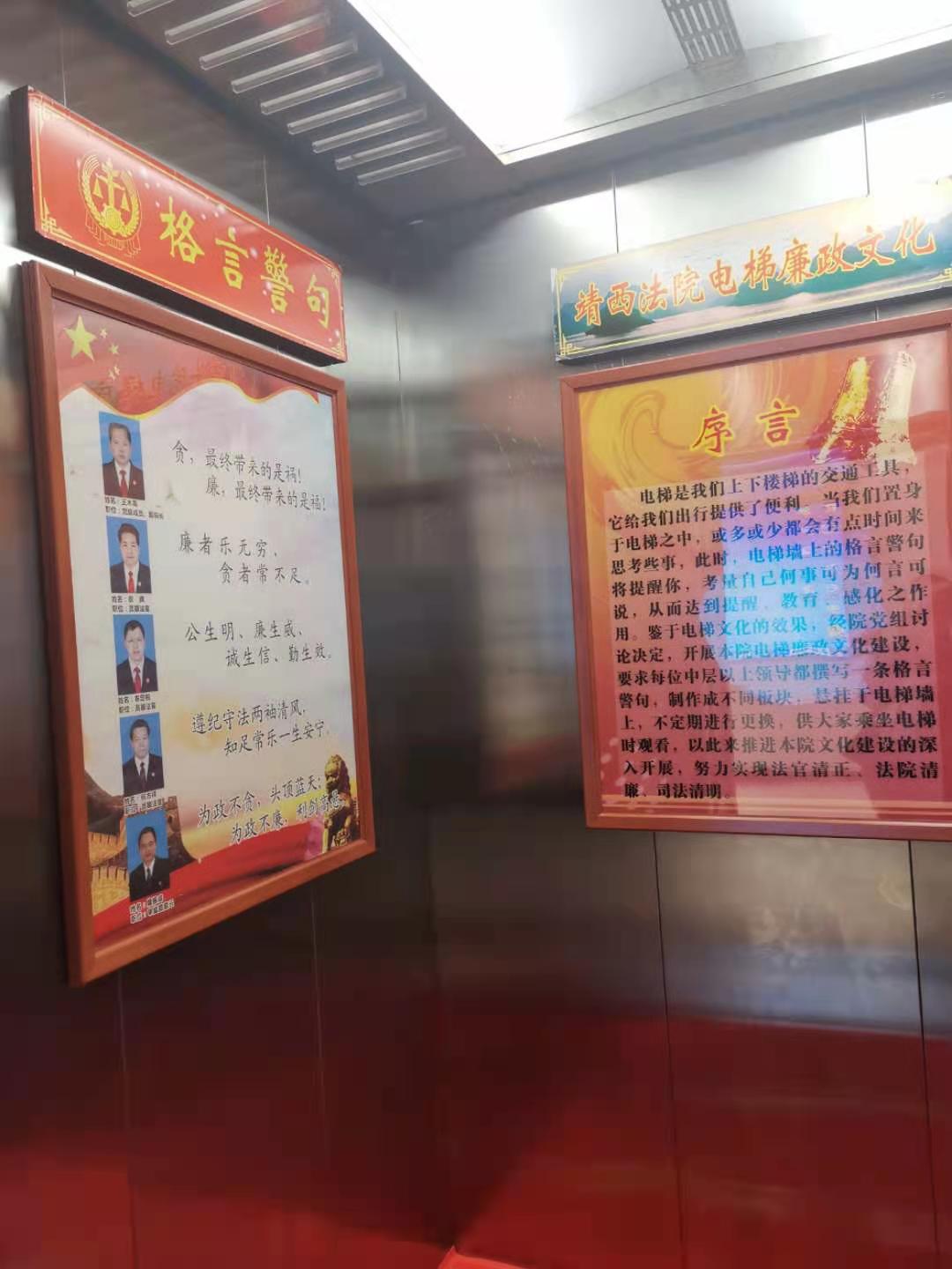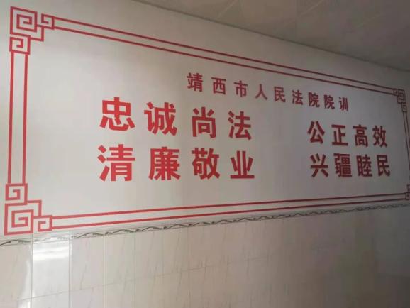 走进靖西市人民法院,顺着台阶而上,门口LED电子屏幕上“努力让人民群众在每一个司法案件中感受到公平正义”首先映入眼帘;进入一楼诉讼服务中心“忠诚、为民、公正、廉洁”的政法干警核心价值观成为每一位干警的座右铭,激励着干警牢记全心全意为人民服务的初心使命。随后,步入电梯,各种格言警句围绕左右,警醒着干警要严格遵守廉洁自律的各项规定,以扎实的工作作风,在司法实践中维护公平正义。