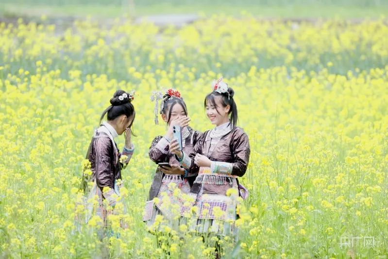 游人在油菜花地里打卡留念 (央广网发 吴光辉 摄)