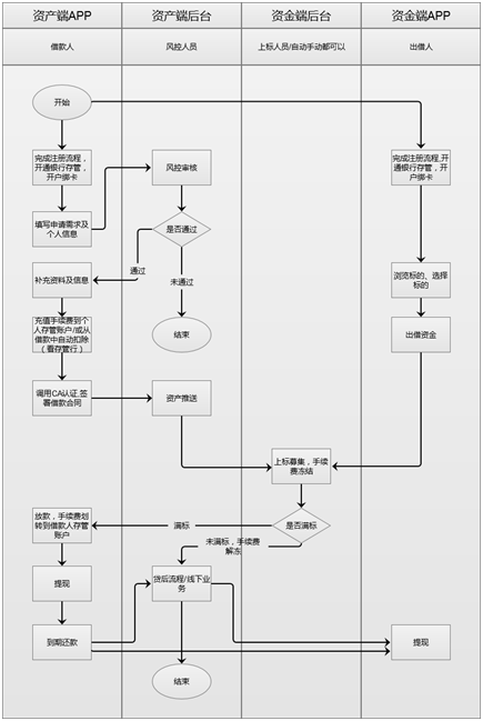 借款和理财一前一后,借款申请正式通过后就可以在理财端上标,而理财端募集完整资金后再转移到借款端流程,借款端还款后再回到理财端提现流程,整体来讲借款在前,理财在后。