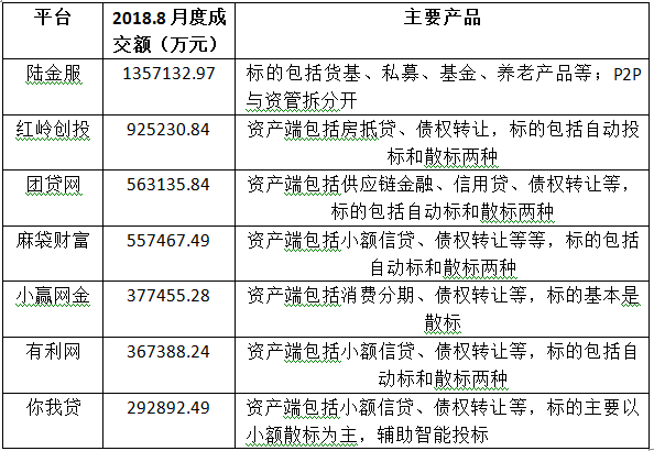 市面上已有的产品基本上大同小异,根据网贷之家数据, 2018年8月份排名靠前的网贷理财平台如下: