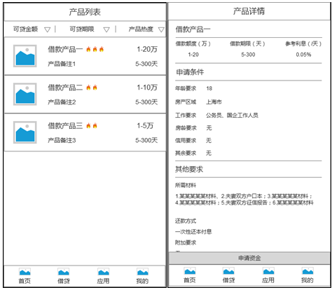 本章节主要设计借款端和理财端的原型,并做些简单分析,为互金朋友提供些参考。