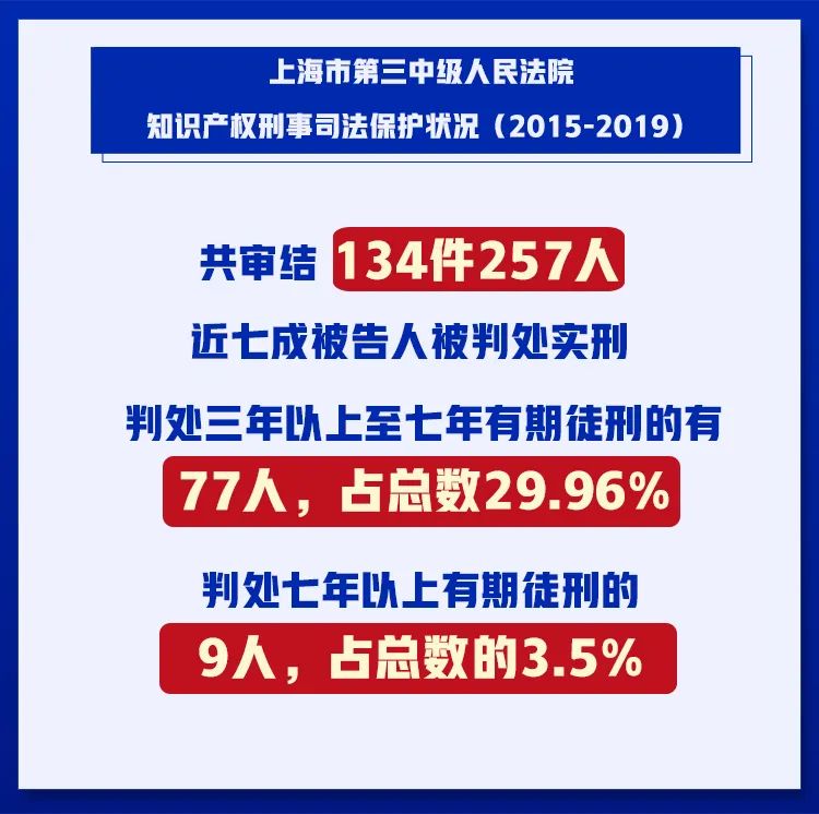 五年来,上海三中院坚持严格保护的司法理念,坚持宽严相济的刑事司法政策,坚持以审判为中心的刑事诉讼制度,依法履行刑事审判职能,不断加大知识产权刑事司法保护力度,为科技创新营造良好的法治环境。