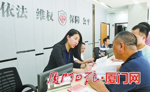 昨日,记者来到湖里区金山西路1号司法行政大楼临街1楼,法援服务窗口从原来的2楼迁到1楼。一到门口,鲜红的“厦门市法律援助中心”几个大字映入眼帘。进入服务大厅,迎面看到的是厦门市司法局局长叶勇义亲自拟定的“依法、维权、保障、公平”八个大字,一眼便明了法律援助的宗旨。