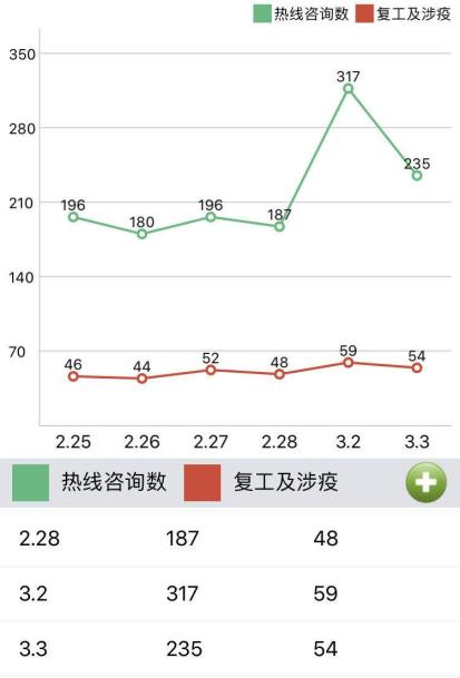 近6日12348热线咨询数及复工、涉疫问题数