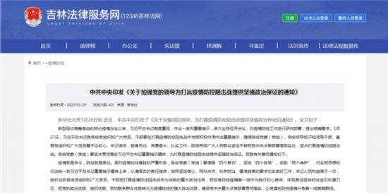 专区设疫情防控法律服务指引、党和国家疫情防控政策、疫情防控相关法律法规、吉林疫情防控政策要求、疫情防控法律知识问答五个版块。