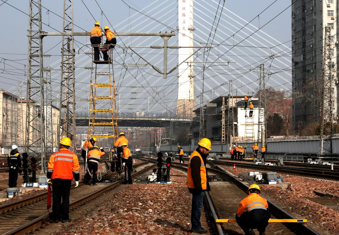 在4个“天窗”时间内,郑州供电段对郑州车站24条公里的供电设备进行了全面检修,为春运旅客安全出行保驾护航。