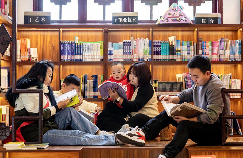 2月16日,市民在贵州省黔西市观农台悦书屋阅读。