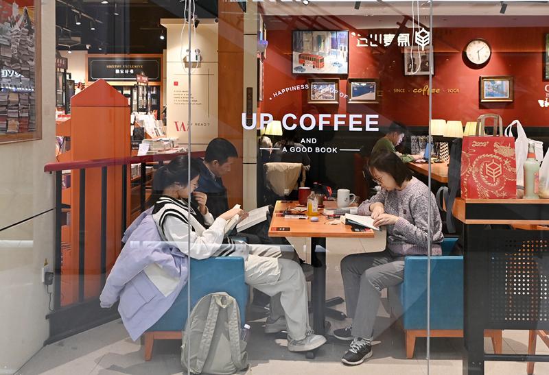 2月16日,市民在天津市西青区大悦汇西西弗书店内读书。