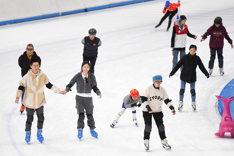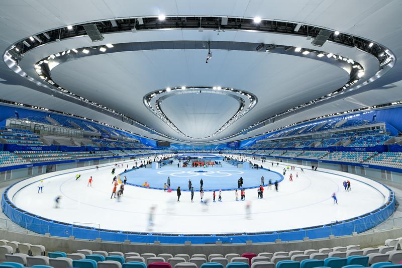 2月16日,滑冰爱好者在北京国家速滑馆滑冰。