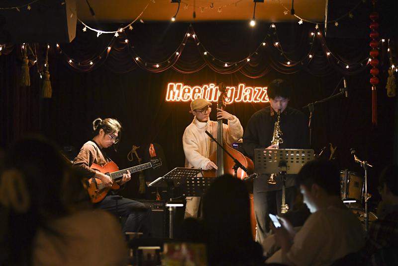 2月13日,音乐爱好者在西安市一家爵士乐俱乐部观看爵士乐表演。