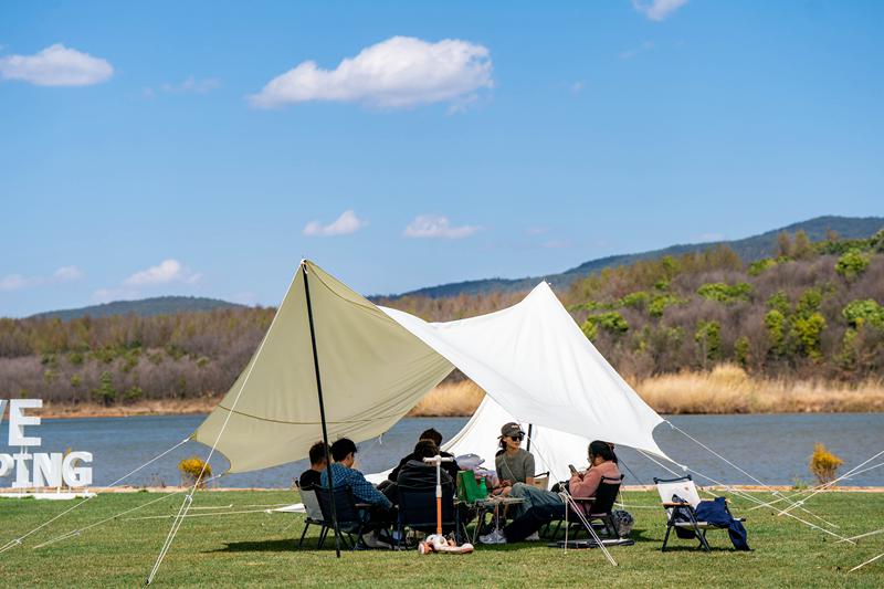 2月16日,人们在昆明市宜良县帏麓营地露营。