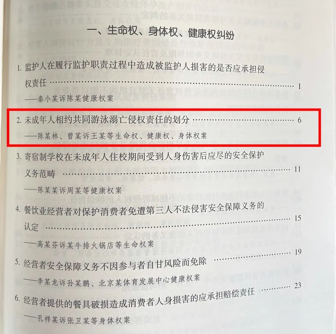 近日,重庆市丰都县人民法院崔龙均、湛野、付春杰编写的《未成年人相约共同游泳溺亡侵权责任的划分——陈某林、曾某诉王某等生命权、健康权、身体权案》(案件承办人:崔龙均)入选《中国法院2023年度案例》!