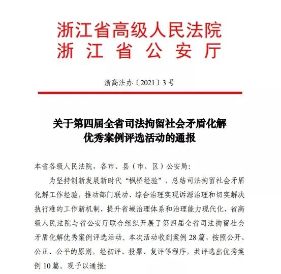 海宁法院案例获评全省司法拘留社会矛盾化解优秀案例