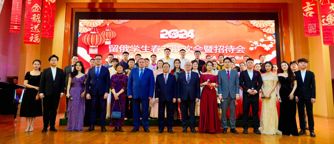 招待会上,留俄学子为来宾献上一场精彩纷呈的视听盛宴。歌曲《我爱你中国》唱出了留俄学子的赤子之心,集体舞《水龙吟》、民乐合奏《万疆》、武术表演《武韵华章》、民族舞蹈《红玫瑰》生动展现了中华文化艺术的独特魅力。当中俄歌曲《灯火里的中国》和《莫斯科郊外的晚上》的合唱响起,中俄文化在此刻完美交融。联欢会在《难忘今宵》中圆满落幕。