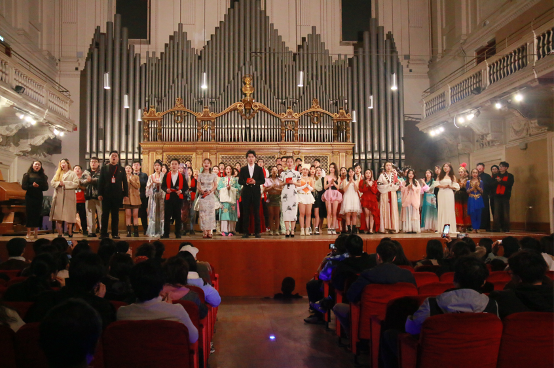 来自西日本地区各大学的中日老师和同学们精心准备了文艺节目。独舞《月下》、歌曲《莫尼山》、乐队表演《Undefined_band 情热大陆/迷迭香》、双人中国舞《一梦惊鸿》、独唱《锦瑟》、歌舞《Queencard》等节目依次登场,招待会在大家齐唱《我和我的祖国》的热烈歌声中结束。