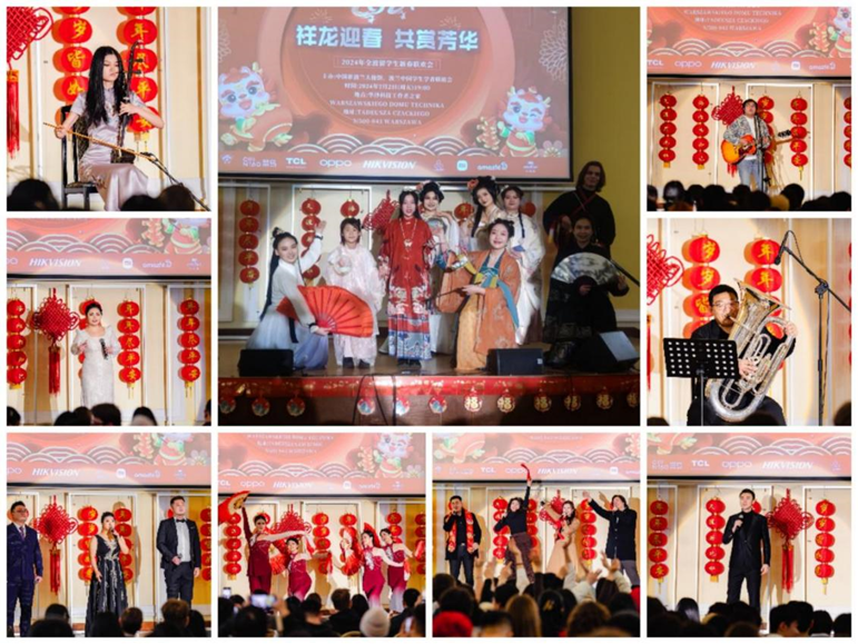 驻波兰使馆和波兰中国学生学者联谊会组织“祥龙迎春 共赏芳华”2024年全波留学生新春联欢晚会(以下简称“联欢晚会”),在波中国学生学者及波兰师生代表等400余人参加。驻波兰大使孙霖江出席联欢晚会,向在波中国留学人员致以新春问候和美好祝福,并现场发放“温暖迎春·共庆中国年”暖心包。